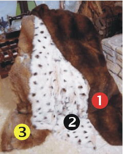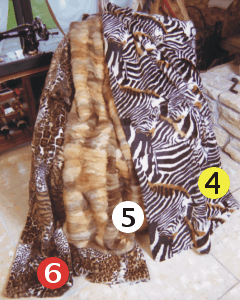 1 Opossum-Decke 2 Fuchs-Decke 3 Rotfuchs-Decke 4 Lapin-Decke Zebradruck 5 Zobelseiten-Decke 6 Lapin-Decke Leodruck |